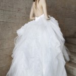 E’ un trionfo di bianco e scollature pronunciate la collezione di abiti da sposa 2015 che Vera Wang ha immaginato per le passerelle della New York Wedding Week. Il total white, in tonalità candida, aggiunge agli abiti un tocco di romanticismo che si mescola senza stridere con sensualità delle scollature pronunciate sul seno e sulla schiena. La sposa di Vera Wang è una principessa romantica che indosssa una vaporosa gonna a balze in tulle tagliato a vivo ma non sa rinunciare al suo fascino femminile.
