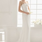 Già ad un primo  sguardo noterete qual è la principale caratteristica di questi abiti da sposa: le linee scivolate, le silhouette perfette e avvolgenti sono la cifra di stile più evidente di quasi tutti i modelli. I tessuti privilegiati sono quelli più adatti a questo tipo di forme: il mikado, l’organza, il pizzo ma anche i tessuti damascati. Il tulle è quasi scomparso e riappare solo per il voluminosissimo modello ball gown con cintura alla vita che aggiunge un pizzico di casual ad un romantico abito da sposa in stile principesco. Dominano il bianco candido e il bianco ghiaccio, tonalità che negli ultimi anni hanno soppiantato il bianco naturale e l’avorio.
