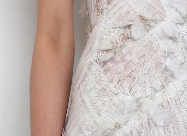 Le bretelle e i corpetti decorati ritornano all’effetto vedo-non vedo, dove il pizzo sembra adagiarsi direttamente sulla pelle. Tornano anche i guantini da sposa al polso e con bordi decorati in pizzo.