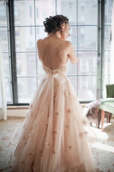 abito da sposa rosa ricamato