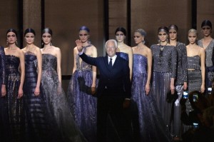 Italian fashion designer Giorgio Armani acknowledges the public at the end of the Giorgio Armani Prive Haute Couture Spring-Summer 2014 collection show, on January 21, 2014 in Paris. AFP PHOTO / MIGUEL MEDINA (Photo credit should read MIGUEL MEDINA/AFP/Getty Images)