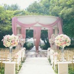 Le decorazioni alte, ad esempio i cesti di fiori adagiati sui piedistalli, hanno un aspetto molto elegante e creano una specie di corridoio naturale attraverso il quale passeranno gli sposi. Le decorazioni basse, appoggiate al pavimento, sono più semplici da strutturare e hanno il vantaggio di non intralciare la vista dell’altare da nessun punto di vista.