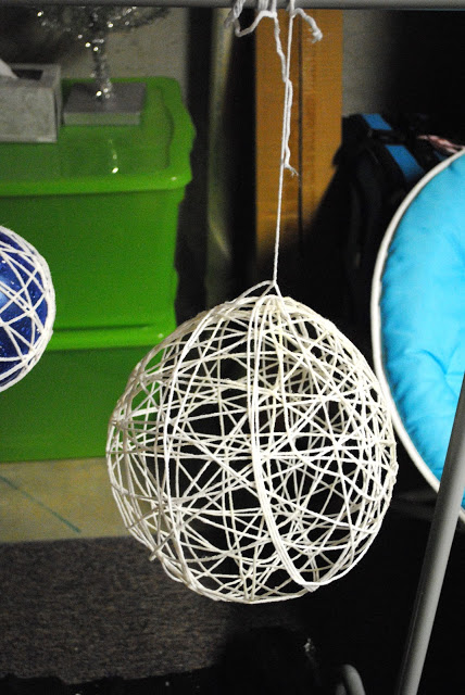 Scegliete se colorare lo spago e dopo aver fatto seccare colla e colore, estrapolate il palloncino e godetevi la pallina.