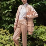 Sul barrè, che ricorda le sdraio sul pontile della nave, compare la sagoma della nostra protagonista pronta a scoprire il mondo mentre l’ottoman marino si riempie di piccole navi Cristoforo Colombo accostato all’organza leggera. Il raso di cotone per pantaloni e giacche, invece, regala un’impronta luminosa e si abbina al popeline per la camiceria su cui il patch è pensato come una tasca. Il mood anni settanta, tanto luxury quanto giovane e fresco, viene sottolineato dai top in jacquard arricchiti da un filo in lurex color oro.