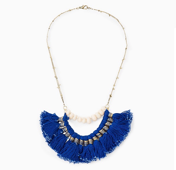 Riguardo i bijoux proposti da Mango per la bella stagione non vi è alcun dubbio, l’ispirazione è sicuramente boho-chic. Ciondoli, pietre colorate, frange e nappine sono gli elementi fondamentali che rendono etnici e particolarmente estivi questi accessori, in particolar modo le collane che sembrano essere state realizzate da qualche tribù africana. Per quanto riguarda i bracciali il trend è quello di portarli più numerosi e tintinnanti possibili, in diversi colori e con pietre colorate. Prosegue, dopo circa un anno, la moda degli Ear Cuff, proposti in diverse tipologie da Mango. Gli orecchini tradizionali invece sono (ovviamente) d’ispirazione etnica, realizzati con piume colorate, pietre e nappine di tessuto.