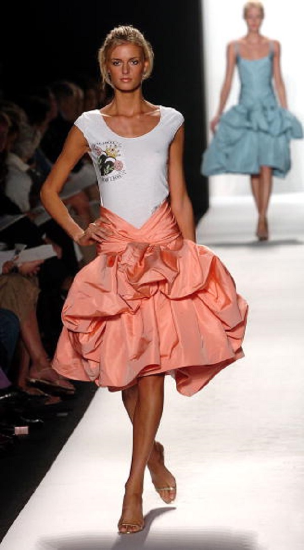 NEW YORK, NY – SEPTEMBER 13: A model walks down the runway at the Oscar De La Renta Spring 2005 fashion show during the Olympus Fashion Week Spring 2005 at Bryant Park September 13, 2004 in New York City. (Photo by Fernanda Calfat/Getty Images)