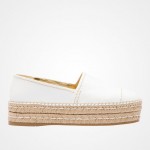 Mango, come Zara, propone delle espadrillas da città, realizzati con materiali classici e non. Nella categoria dei classici senza tempo, rientrano sicuramente le espadrillas a righe bianche e azzurre, in misto cotone con suola in iuta intrecciata ed impunture bianche. Sicuramente meno tradizionali le espadrillas di pelle marrone chiaro/beige con inserto posteriore a contrasto di lino azzurro e suola intrecciata in juta. Per la sera invece, Mango propone espadrillas total black di morbido camoscio con inserto a contrasto di pelle e suola intrecciata in juta.