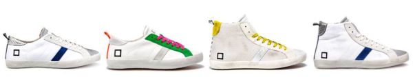Sulla scia delle Stan Smith classiche, tornate in voga dopo un periodo di assenza dalle scene, D.A.T.E. propone una linea di sneakers chiamata Hill. Queste scarpe sono disponibili in due versioni, una alta e una bassa. Entrambi i modelli sono realizzati in materiali diversi e sensoriali: soft e setosi al tatto oppure metallizzati con texture tridimensionale o ancora in tessuto tecnico intrecciato, in contrasto con la banda laterale in nappa colorata o in morbido suede.