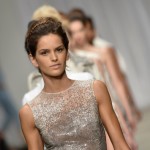 Una finta treccia sottile che decora il raccolto. E’ questa la treccia cerchietto che Ermanno Scervino ha proposto alle sfilate della Milano Fashion Week. Il raccolto si modifica per diventare una struttura composta e gonfia in cui non ci sono forme ben definite ma solo volumi all’ennesima potenza. Questa imponente struttura è divisa in due da una treccina che separa la parte frontale leggermente bombata della pettinatura, dalla parte del retro che invece è pettinata come uno chignon disordinato dalla forma tondeggiante.
