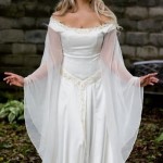 Siccome il matrimonio non deve diventare una festa in costume, è meglio non esagerare con gli abiti. Mantenetevi sempre sullo stile dell’abito da sposa bianco, magari optando per un modello scivolato, quasi a sottana, con decori sul corpetto e maniche lunghe e larghe. Dovrete solo ricreare un’atmosfera e non vestirvi di Carnevale! Sulla testa della sposa ci potrà essere una coroncina adagiata sui capelli sciolti e morbidi oppure sulle trecce che sono la pettinatura che più ricorda le acconciature medievali.