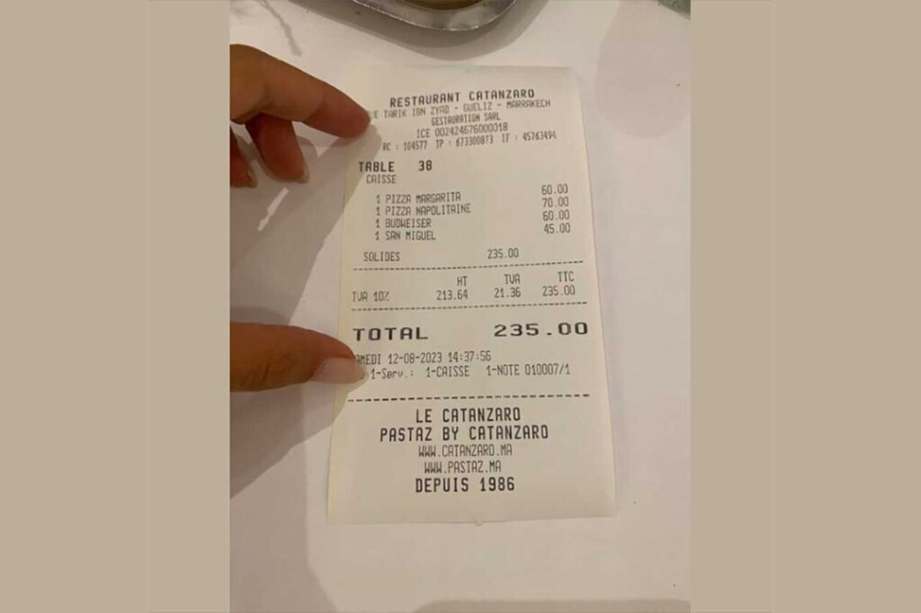 Leggendo attentamente lo scontrino Restaurant Catanzaro, ecco che si noterà come sia scritto in primis in inglese, ma soprattutto è menzionato il luogo di questo ristorante che è Marrakech, in Marocco. Non esiste quindi nessun Retaurant Catanzaro in Italia, ma si tratta di una pizzeria situata appunto a Marrakech e qui chiaramente la moneta utilizzata non è l’euro. Non bisogna leggere lo scontrino in euro, non sono 235 euro, ma si tratta di 235 Dirham, moneta del luogo che, al cambio, non si tratta altro che di 21 euro.
