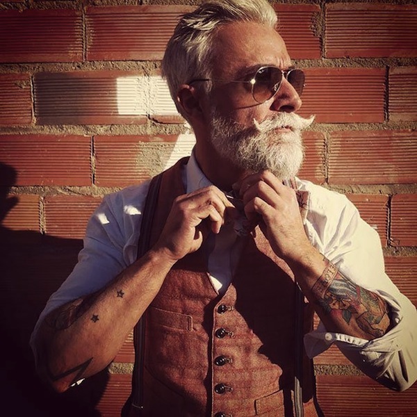 Così accade per l’impeccabile signore con occhiali da sole, baffi alla hipster e panciotto.