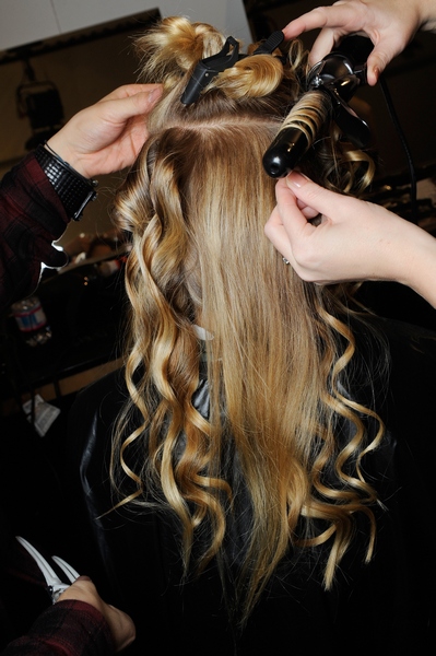 A model is seen backstage ahead of the Max Mara show during the Milan Fashion Week Autumn/Winter 2015 on February 26, 2015 in Milan, Italy.